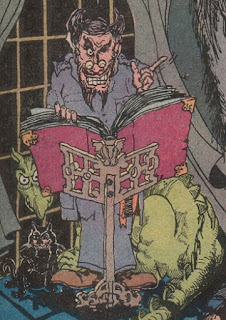 Even Sergio Arragones' opening splash page, a portrait of the title's host, Cain, is all about the eyes. Both Cain's pet cat and gargoyle stare out at us menacingly, while our macabre host himself has one eye shut while the other is open wide. He too fixes us with his gaze in preparation to embarking on the telling of the stories that follow.