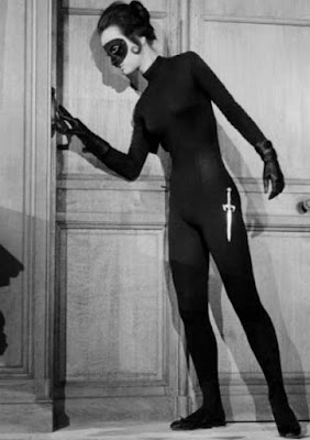 And Georges Franju's 1963 movie JUDEX featured a female catburglar, played by Francine Berge, whose style of dress was reminiscent of the character of Irma Vep. This would have been quite deliberate, since Musidora who had played Irma Vep in 1915 also appeared in the original version of Judex back in 1916, and Franju's movie was his tribute to both serials.